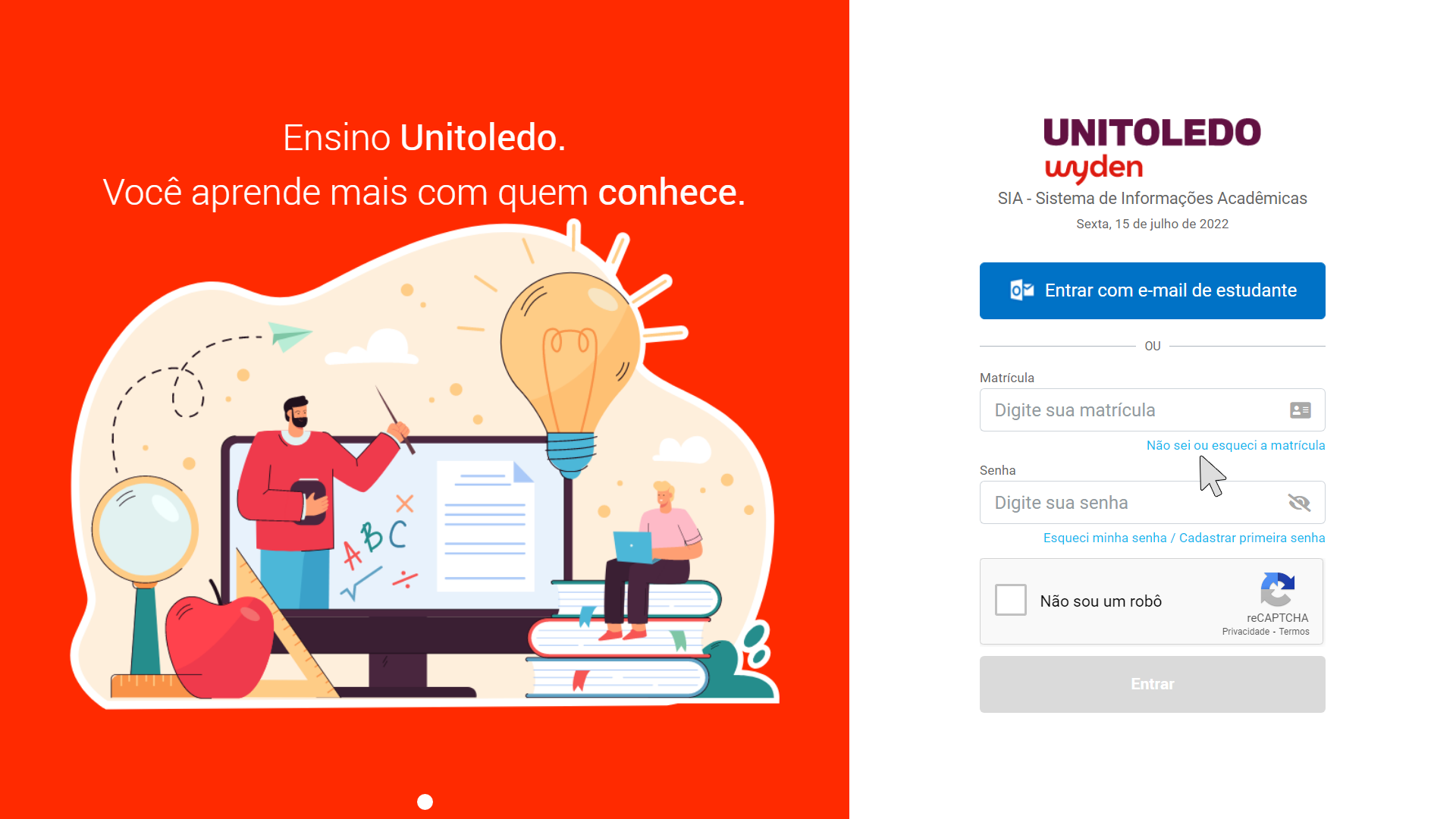 Caso você não saiba sua matrícula, clique em "Não sei ou esqueci a matrícula", na página de login, e siga o